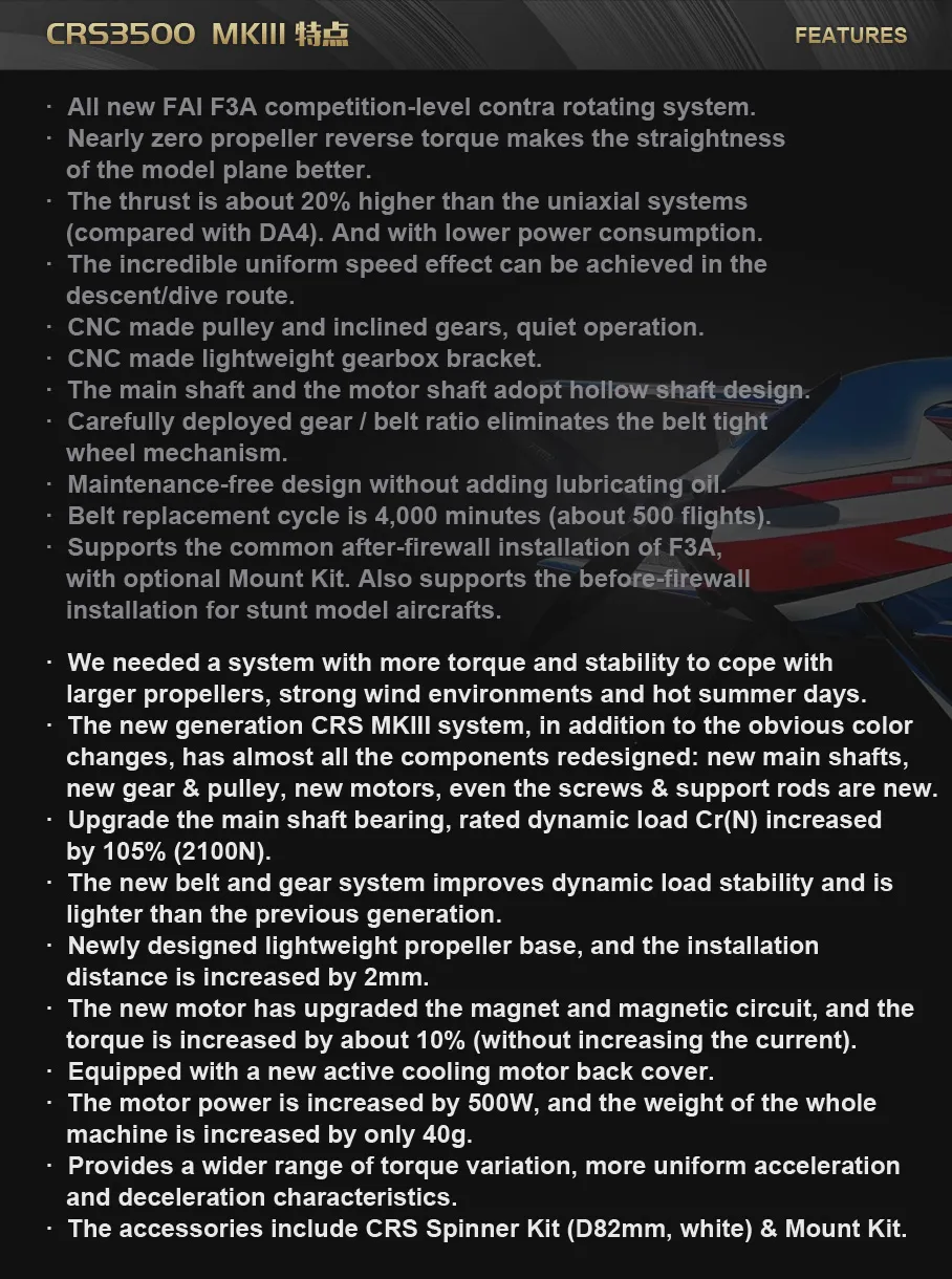 Das Dualsky F3A Contradrive System ist eine leistungsstarke gegenläufige Antriebseinheit, die speziell für den Präzisionskunstflug (F3A) entwickelt wurde. Das System bietet eine überragende Drehmomentbalance und verbesserte Flugstabilität und ermöglicht sanftere Manöver, verbesserte Bremsleistung und reduzierte gyroskopische Effekte — perfekt für anspruchsvolle Kunstflugpiloten.