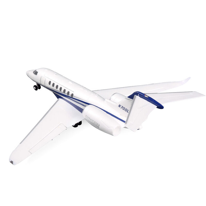 The E-flite® UMX™ (Ultra Micro eXtreme) Citation Longitude makes it easier for more pilots to enjoy a unique and exciting twin EDF jet experience in more places than ever before! Equipped with 3S-compatible brushless outrunner motors and 30mm fans, the UMX Citation Longitude offers more speed and vertical performance than other ultra micro class EDF jet models – and longer-than-average flight times when using the recommended 3S 800mAh LiPo batteries (sold separately). It’s less complex and easier to fly than larger EDF models, and because it’s equipped with exclusive AS3X® and optional-use SAFE® Select technologies, it’s a great choice for your first or next twin-powered jet. It has a scale outline and trim scheme that are officially-licensed by Cessna, plus functional features including a full-flying stab and LED navigation and landing lights. Take off from and land on smooth surfaces using the included landing gear with a steerable nosewheel, or quickly and easily remove the landing gear for launching by hand and landing on grass. With its convenient ultra micro size the UMX Citation Longitude Twin 30mm EDF is right at home at a wide variety of suitably-sized sites including soccer fields, football fields, large parks, and RC flying fields. Best of all it arrives 100% factory-assembled and ready to bind to a compatible 5+ channel Spektrum DSMX/DSM2 equipped transmitter so you can be flying within minutes of opening the box that can also be used for safe and convenient storage and transport!