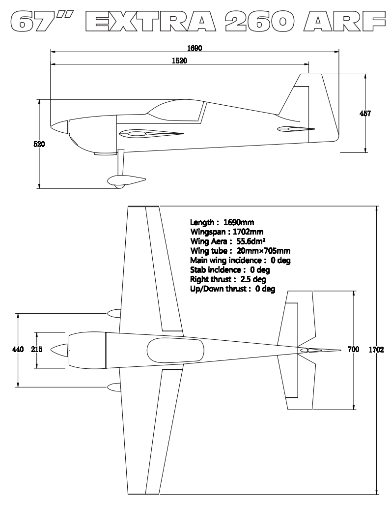 Extreme Flight - Extra 260 67", Rot/Weiß ARF-Bausatz