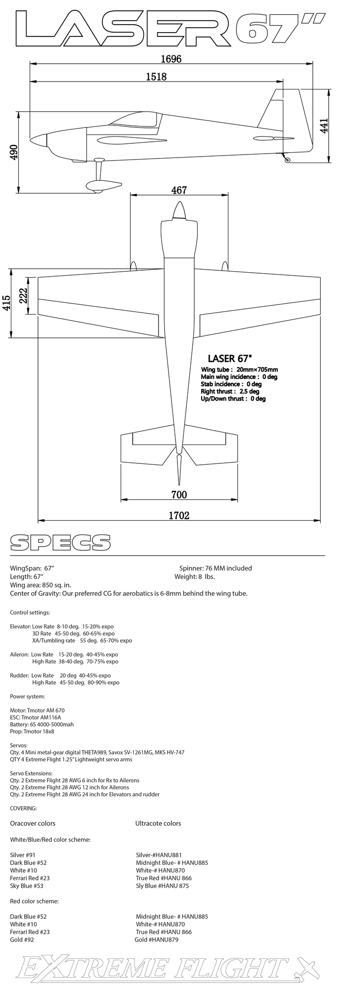 Extreme Flight - Laser 67" EXP, White/Blue/Red/Silver ARF Kit