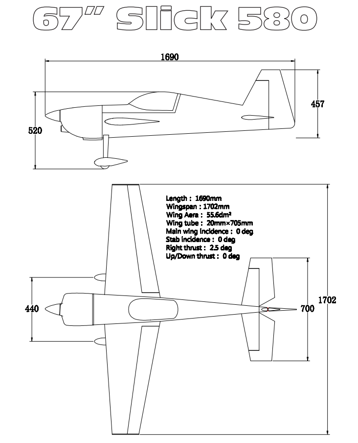 Extreme Flight - Slick 580 EXP 67", Gelb/Rot/Grau RxR (Empfängerbereit - PNP)