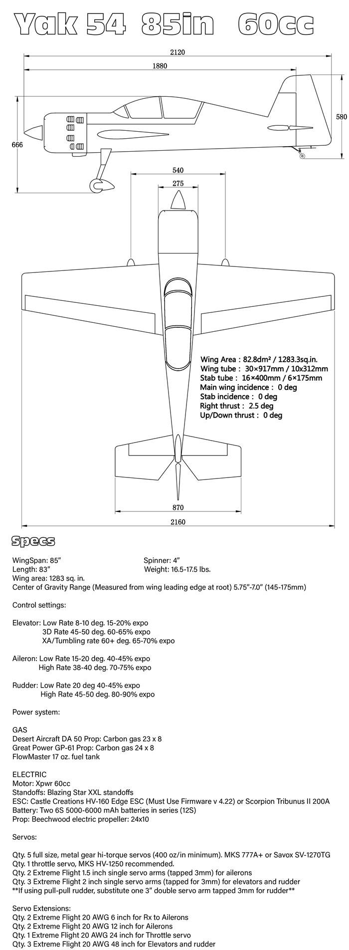 Round cowls are back and the long-awaited 85" Extreme Flight Yak 54-EXP has arrived! The design is a scaled down but ultra modern version of the 91" and 110" brethren. Featuring all of our latest construction materials and methods as well as all the current carbon fiber and composite components. The Yak 54-EXP also features the latest generation machined aluminum wing/stab/canopy locking mechanisms to ensure the Yak assembles quickly at the field, and disassembles just as fast when your hucking session has ended.