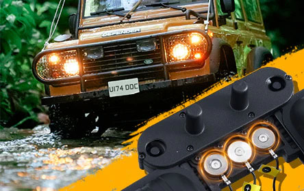 Seit 1948 ist der Defender ein Synonym für robuste Zuverlässigkeit. Seine hohe Bodenfreiheit, seine robuste Karosserie und seine furchtlose Leistung machten ihn zu einem Star bei extremen Herausforderungen wie der Camel Trophy.