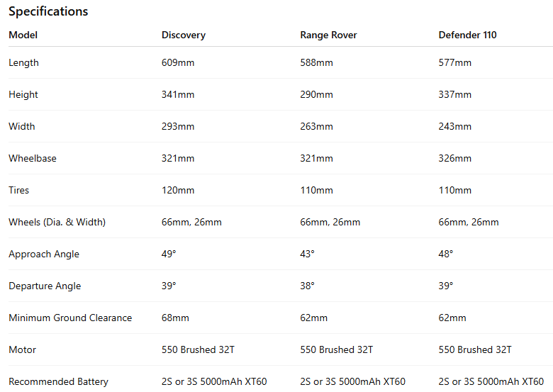 Ausgestattet mit einem 550er Bürstenmotor und einem 25kg V2-Metall-Lenkservo liefert die Land Rover Serie reichlich Drehmoment für Steigungen und sanftes, kontrolliertes Fahren. Mit dem Zweigang-Getriebe können Sie mühelos von präzisem Kriechen bei niedrigen Geschwindigkeiten auf schnelle Trailläufe umschalten.