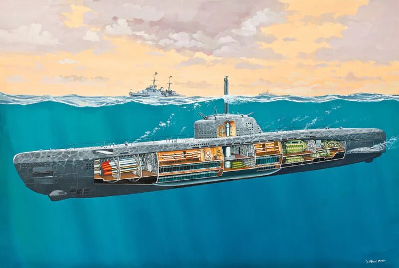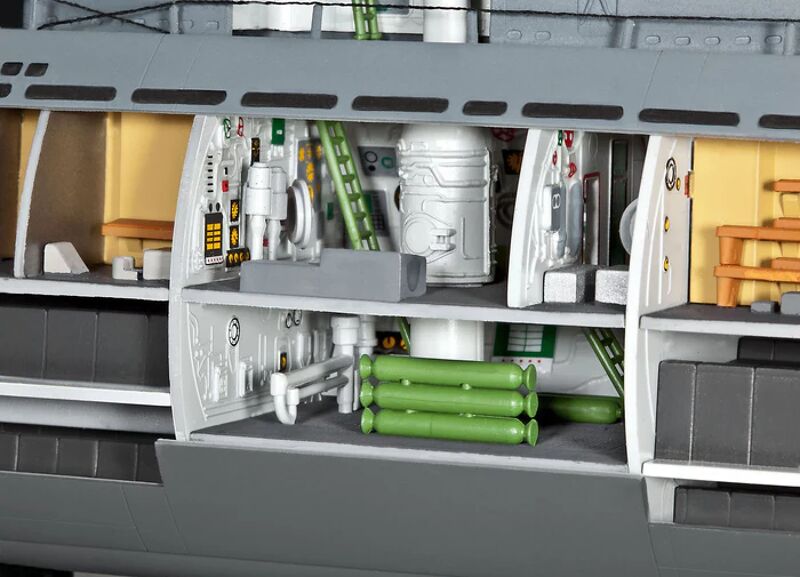 Dieses Modell bietet einen authentischen Einblick in den revolutionären Typ XXI, mit einer abnehmbaren linken Außenhülle, die das komplizierte Innenleben offenbart. Jedes Detail, von den Diesel- und Elektromotoren bis hin zur Kommandozentrale und den Wohnräumen für die Besatzung, wurde originalgetreu nachgebildet. Der Bausatz enthält Abziehbilder für U2540, das am 24. Februar 1945 in Dienst gestellt und am 4. Mai 1945 von seiner Besatzung in der Flensburger Förde versenkt wurde. Später, im Jahr 1957, diente das Boot der Bundesmarine als Versuchs-U-Boot Wilhelm Bauer und kann heute als Museumsschiff besichtigt werden.