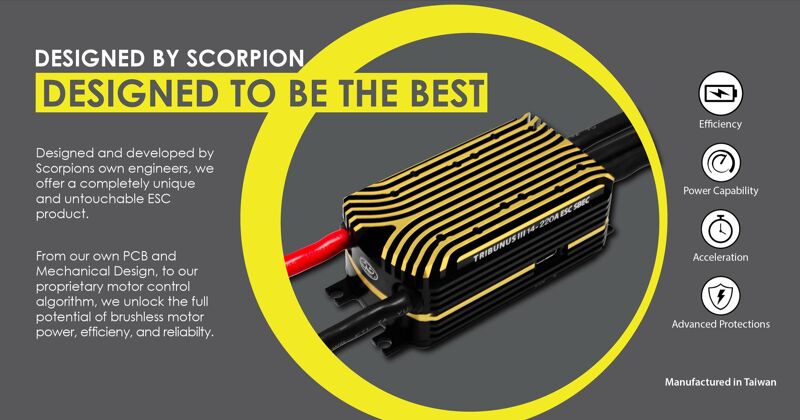 Wir bei Aerobertics sind stolz darauf, den Scorpion Tribunus III 14-220A ESC anbieten zu können, der eine neue Generation von Hochleistungs-Reglern von Scorpion Power Systems repräsentiert.