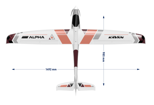 The Alpha is equipped with a 30A KAVAN R-30B Plus ESC and an 8.5×6" folding propeller, offering excellent climb performance and thermal hunting ability. A 3S 1000–1300 mAh LiPo (20C+) provides the perfect balance of power and endurance. With a wingspan of 1492 mm, flight weight around 780–810 g, and a wing surface area of 21.8 dm², she’s stable, agile, and easy to transport.