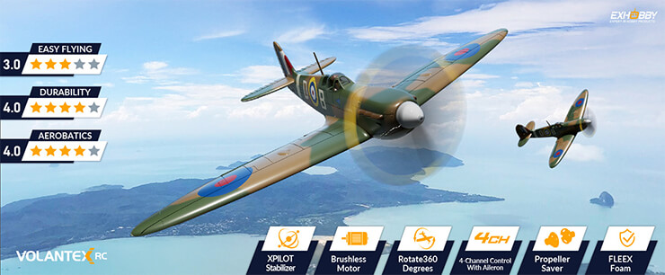 Volantex Spitfire MKII 500mm Brushless 4CH with Gyro – RTF – at Aerobertics