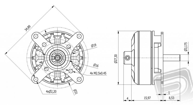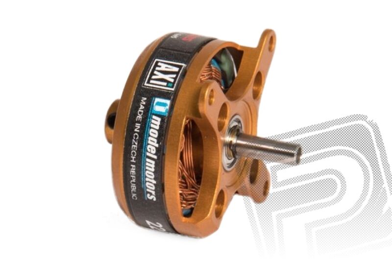 New very light and powerful motor AXI 2203/RACE GOLD LINE V2 with hollow shaft, these motors have three-point mounting lugs and reach just 19g in weight. These motors was tuned by Gernot Bruckmann especially for area of fast indoor aerobatic models. Three-point mounting lugs allows easy mounting to the fuselage of model and fast centering of motor. 3,17mm best quality hollow shaft is supported by two ball bearings. This motor is suitable particularly for light AIR RACE and fast aerobatic indoor models up to 170g in weight.