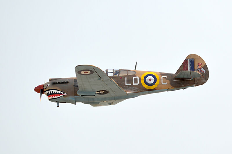 The Curtiss P-40C Tomahawk is a World War II-era fighter aircraft developed by Curtiss-Wright Corporation. It is an early variant of the P-40 Warhawk series, known for its distinctive shark mouth nose art. The P-40C features an all-metal construction, low-wing design, and retractable landing gear. It is powered by an Allison V-1710 V-12 engine, providing a top speed of around 345 mph. Armed with two .50 caliber machine guns in the nose and two .30 caliber machine guns in the wings, the P-40C was used primarily by the United States Army Air Corps and allied forces for both air-to-air combat and ground-attack missions. Its rugged design, good diving characteristics, and reliability made it a valuable asset in early WWII combat theaters.