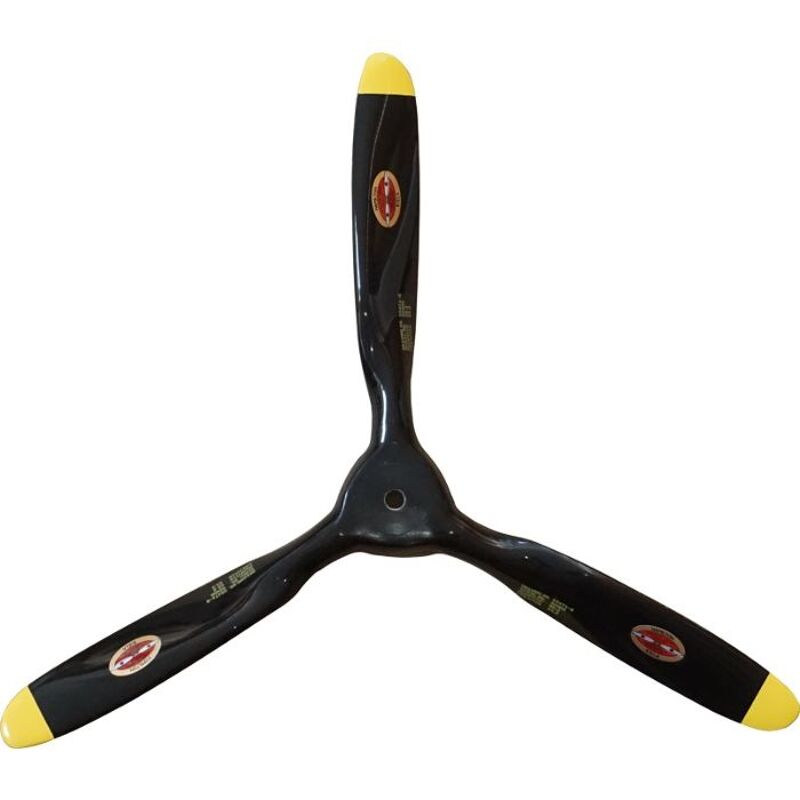 Biela 15x10 carbon 3-blade semi scale propeller for electric engines (Black/yellow Spitfire version)