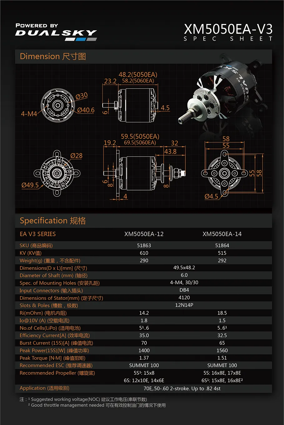 Dualsky Xmotor XM5050EA-12 610KV 1400W V3 moteur brushless