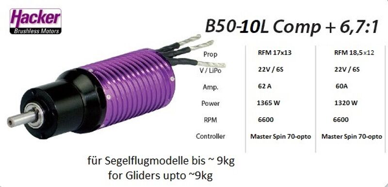 Hacker B50-10L Compétition + 6,7:1 Kv 2210