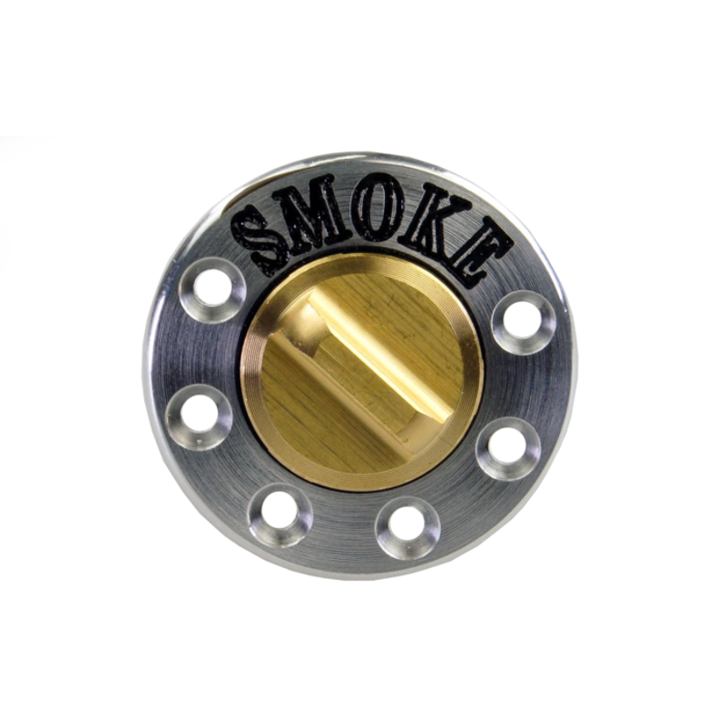 Lockable refueling valve suitable for engine or jet R/C models for installation in the fuselage. The refueling valve is made of high-strength aluminum with engraving 'SMOKE', the fastening with handle made of brass.