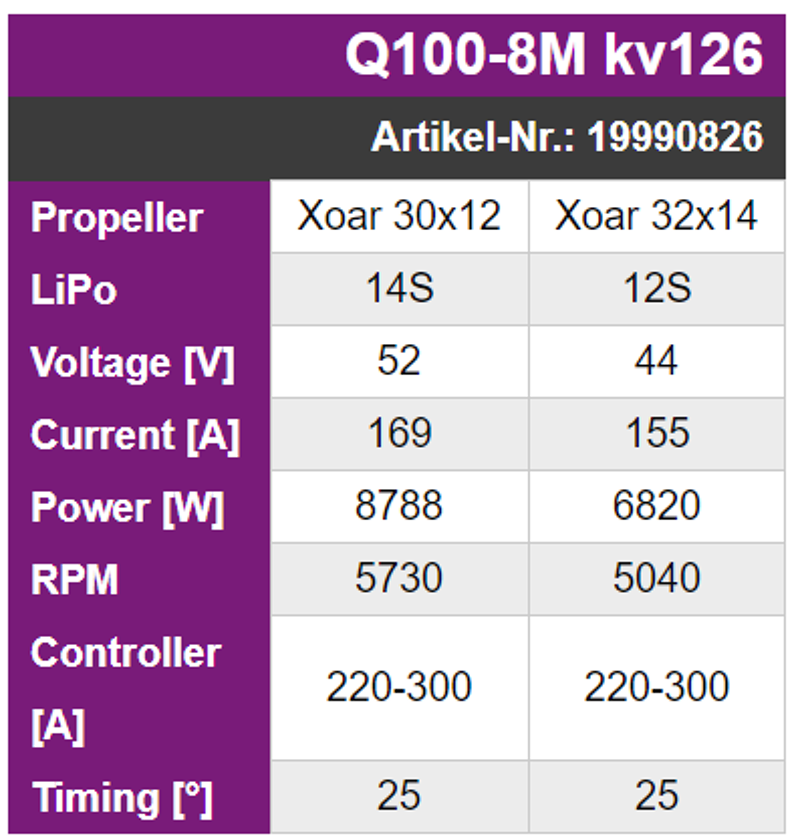 With the Q100-M, we are now bringing a motor from our industrial sector to the modelling sector, with its innovative design and efficient motor geometry guaranteeing enormous power and outstanding performance. This high-end motor is completely hand-built and constantly undergoes the most precise quality controls. "Made in Germany" and industrial quality stand for the highest standards and quality. The new prop driver with 34mm bolt circle and 6 x M5 screws transfers the high torque of the Q100 perfectly to the prop.