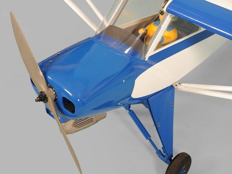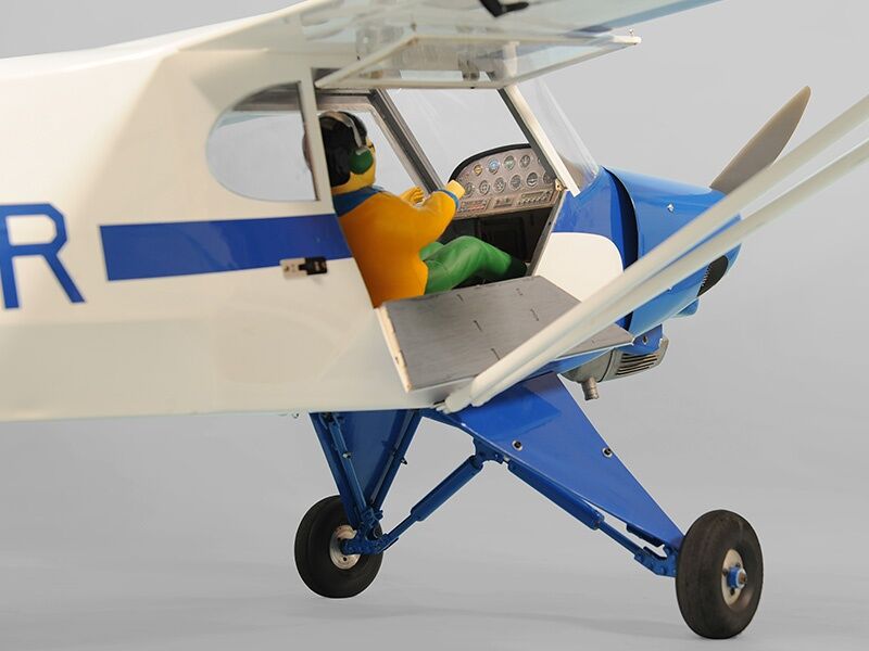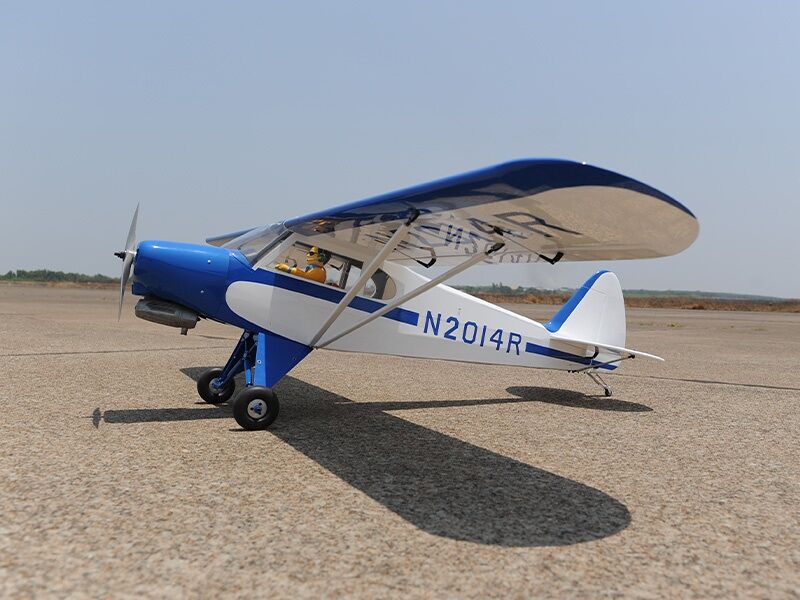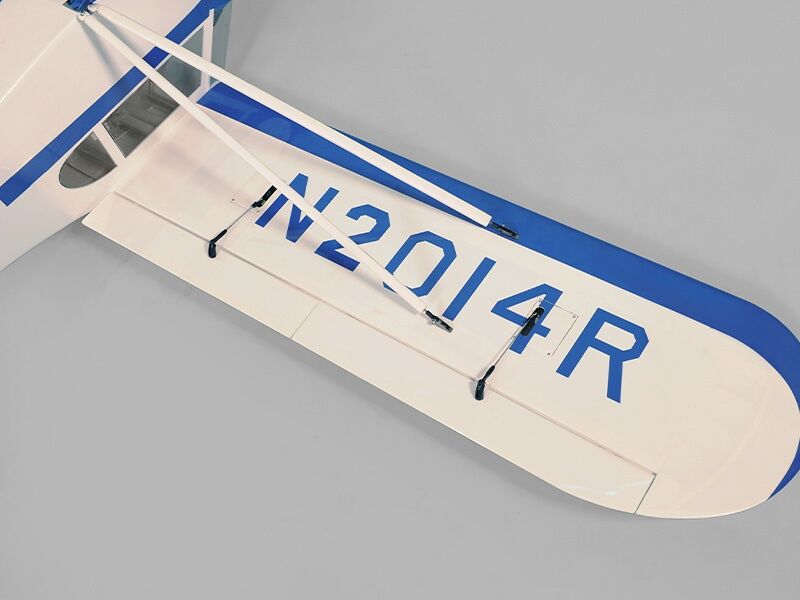 Le Super Cub présente une conception en balsa et en contreplaqué de haute qualité, découpée au laser pour une précision maximale. Son degré de préfabrication extrêmement élevé minimise le temps d'assemblage, permettant aux pilotes de se concentrer sur l'installation de l'électronique et du système d'alimentation. La trappe amovible de la cabine offre suffisamment d'espace pour faciliter l'installation de tous les composants. Le modèle est entièrement recouvert d'un film durable pré-imprimé, ce qui le rend prêt à l'action dès sa sortie de la boîte.