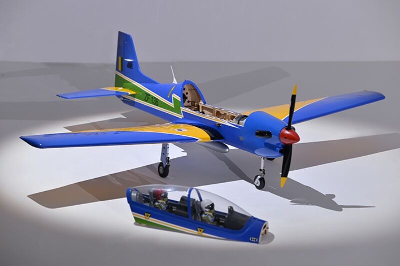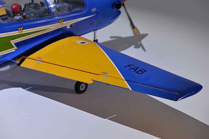 The entire balsa construction of the Tucano 60 MK2 has been reinforced in certain places, which means that even more powerful engines are now possible. Depending on the drive and electronics, the model weighs between 4.2 and 4.8 kg and thus remains under the 5 kg mark.