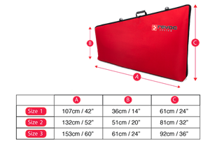 Wing bag available in THREE sizes: please choose the size from the list above.All sizes listed are inside dimensions. Inside the bags is a layer of 10mm foam enclosed in velvet to separate two wings. Each bag includes a pocket for the wingtube that has enough space to easily insert and take out the tube. The outside surfaces of the bag are made of waterproof, heavy and durable 600 denier HQ fabric material. The inner parts are made of soft velvet which is very convenient and safe delicate wing covering in transportation and storage. Between the PVC fabric and velvet your wings are protected by 5 mm layer of foam additionally covered by PVC foil.