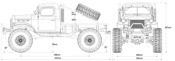 The car body is moulded with PC plastic, which is light in weight and has a low center of gravity; the nylon roll cage at the back can protect the car shell during rollovers. The rigid metal frame and four-link suspension system ensure strong climbing ability. The chassis has proven reliability. In both dynamic and static aspects, the real vehicle has been painstakingly restored.