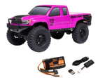 Full-time 4WD and a 3-link front/4-link rear suspension let you confidently muscle this micro crawler over rough, risk-filled trails. Worm gears on the axles increase the ground clearance. Realistic steel frame rails on the C-channel chassis stand up to hard knocks. The proven SCX24 suspension tackles bumps, rocks, and stays stable over tough terrain. Topping it all off is a durable, factory-finished body with contemporary truck styling.