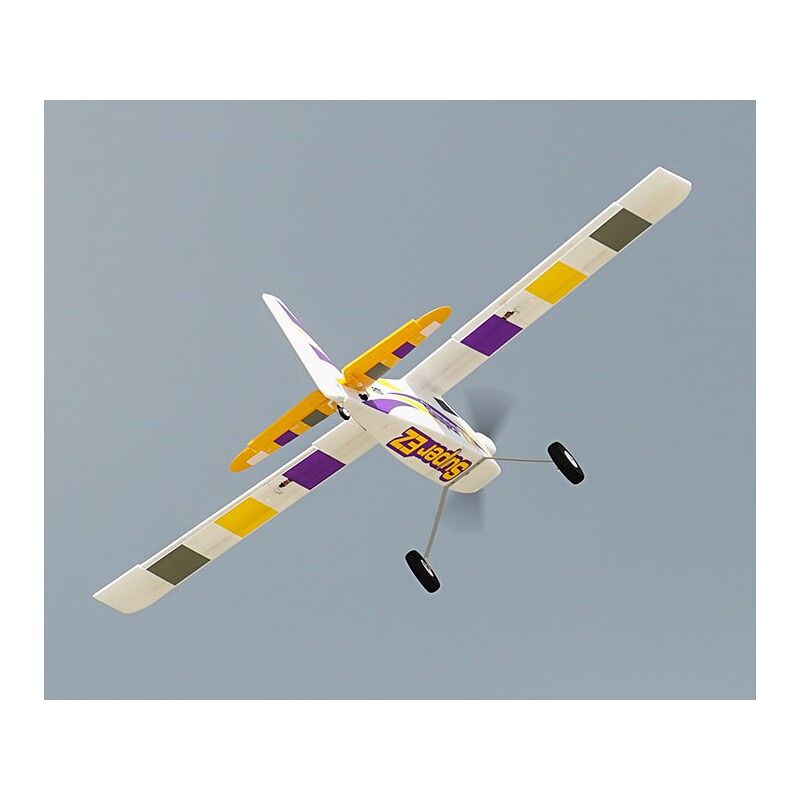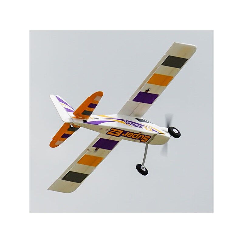 Using a large, high-winged design constructed out of lightweight EPO foam, the SuperEZ has an ultra-low wing loading and stable flight characteristics- giving beginner pilots great handling even at slow speeds. An improved brushless power system and propeller gives the aircraft ample power while still maintaining 10-15 minute flight times. A high strength, lightweight metal landing gear set absorbs even the hardest landings.