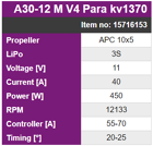 This weight-optimized high-end motor with a weight of only 104g fits perfectly in Para-RC models. The Para version of the A30-12M V4 motor is already has a backmount mounted shaft.