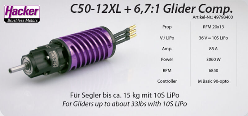 Special 6mm Shaft for Foldingprops.Motormountingsrews 4x M3 30mm Diameter.F3A proven internal Coolingsystem. Technical Data:Powerrange max. 2700W (glidertypical Runtimes)Idle current 1,51A Innerresistant 0,0178 Ohm kv 1353 U/min-1 Weight 523g Diameter 43,2 mm Lenght 115,5 mm recommended ESC MasterSpin 99 recommended Timing 0° - 5° Gearratio 6,7:1 Shaftdiameter 6 mm