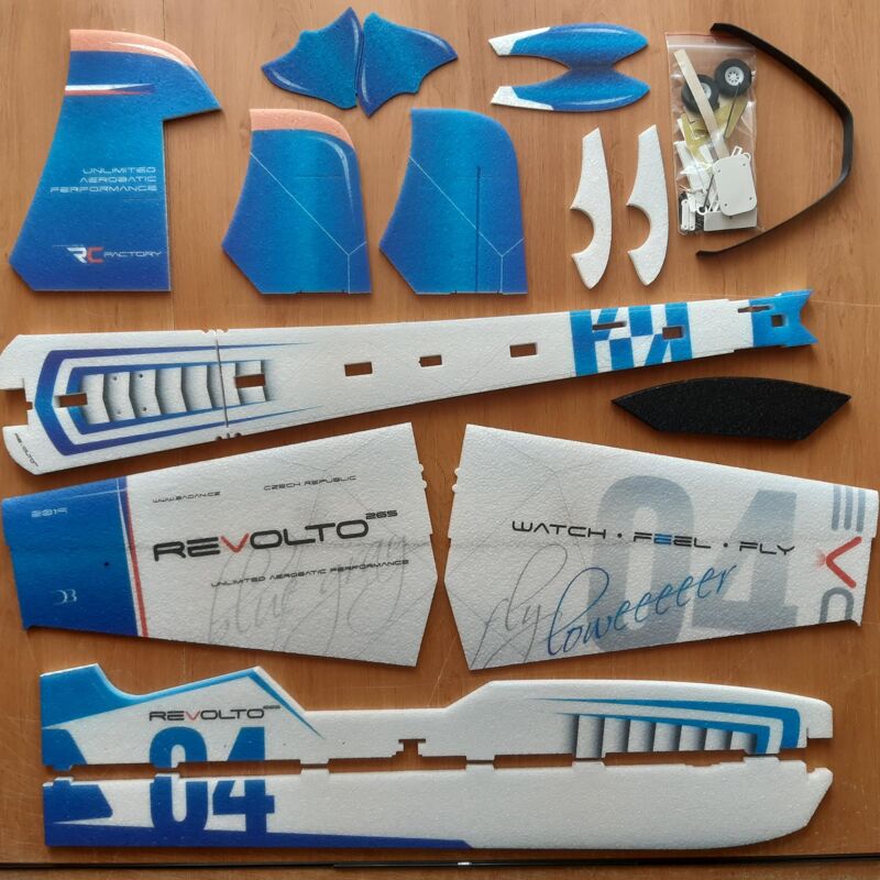The model is a "scale model" of another model, the unique balsa aerobatic plane Revolto produced by Badan Airplane Kits company. The designer, Dan Bartušek, is known for always coming up with airplanes of recognisable, "sexy" shapes.